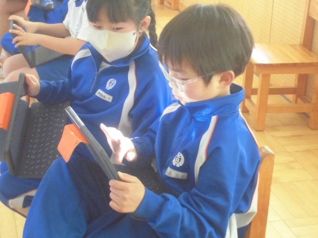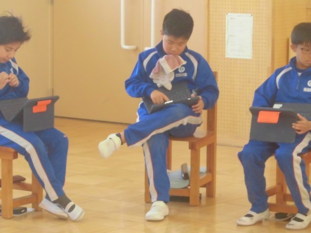 交流学級での、図工のタコ作り、音楽でのタブレット操作のようすです。