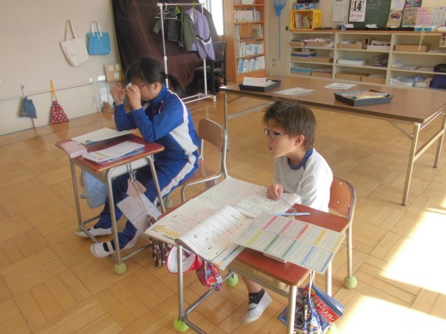 個別に算数の計算方法について学習しているようすです。