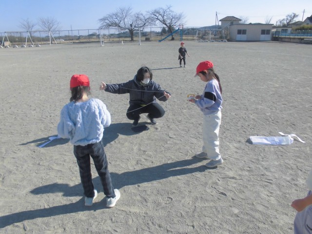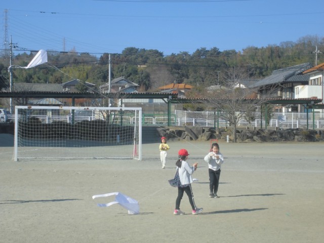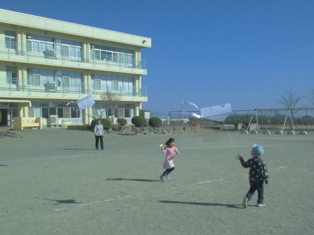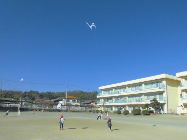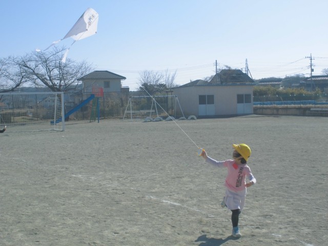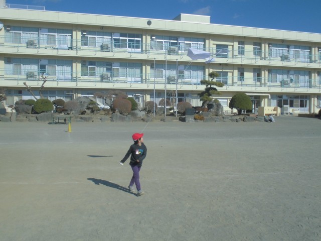 自分でデザインしたタコのタコ上げです。今日は暖かく、ほどよい風が吹いて、絶好のタコ上げ日和となりました。