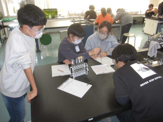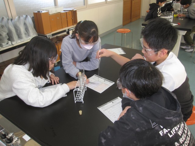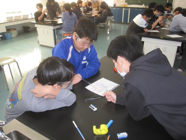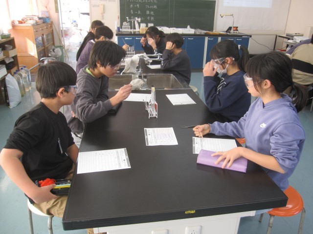 1月20日(火)6年生 理科 その1 公開日 2026/01/20 更新日 2026/01/20 できごと リトマス紙を使って、5種類の水溶液をなかま分けしました。 うすい塩酸と炭酸水は酸性、食塩水は中性、重そう水とうすいアンモニア水はアルカリ性であることがわかりました。 +4