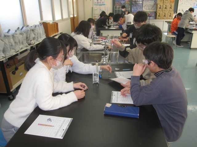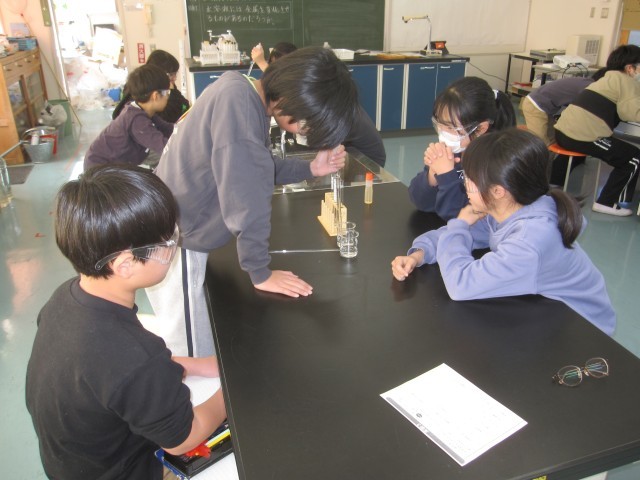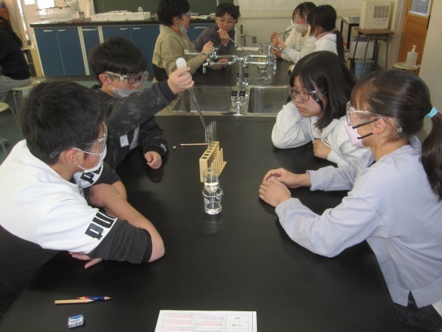 1月20日(火)6年生 理科 その2 公開日 2026/01/20 更新日 2026/01/20 できごと 金属にうすい塩酸を注ぐとどうなるか調べました。 塩酸には、アルミニウムや鉄などの金属をとかすはたらきがあることがわかりました。 +4