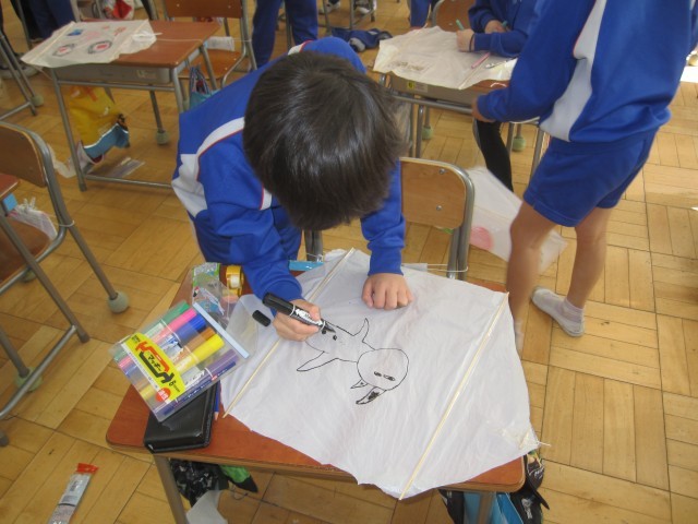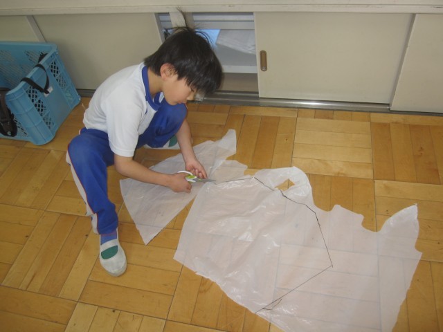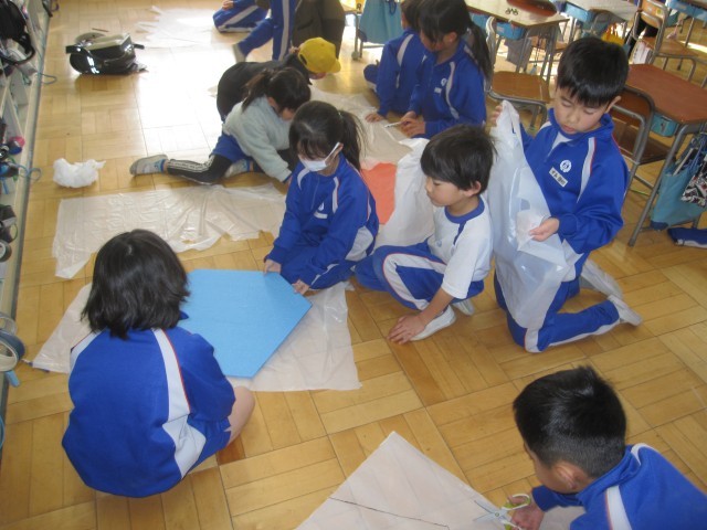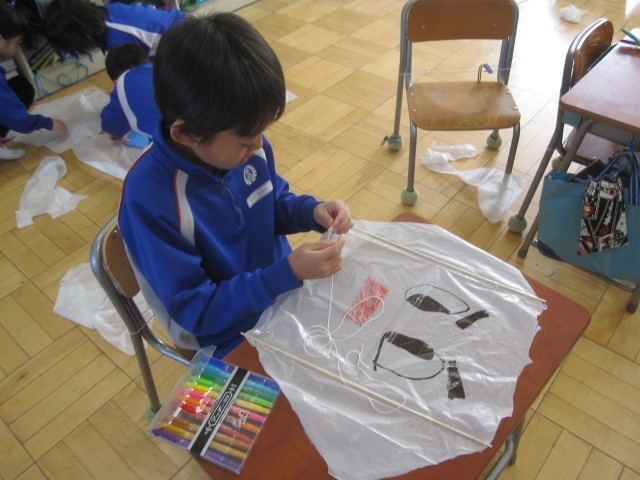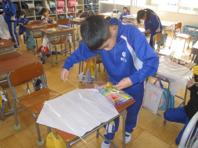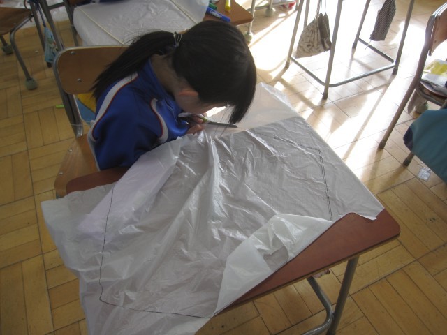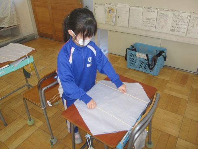 レジ袋で科学凧を作りました。