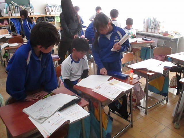 1月29日(木)3年生 算数 公開日 2026/01/29 更新日 2026/01/29 できごと 「□を使った式」「重さの単位」など覚えたり理解したりするのに時間がかかる学習が進んでいます。友だちと答えを確かめたり教え合ったりすることで理解が深まります。日野小学校の友だちとの学習もずいぶん慣れてきました。明日で合同体験学習が終わってしまうのが残念です。