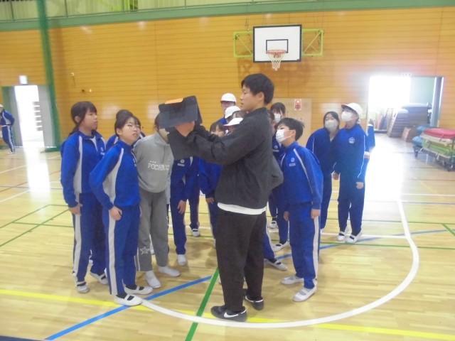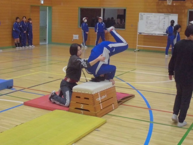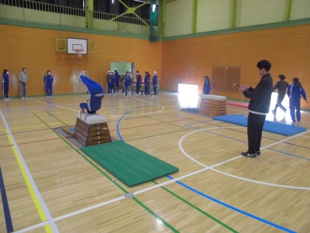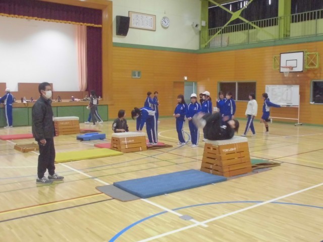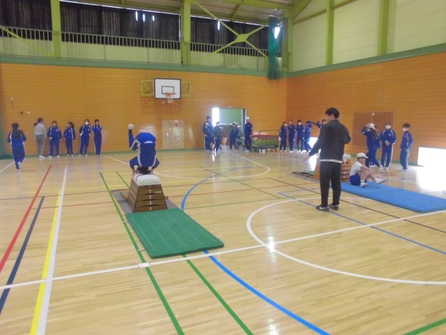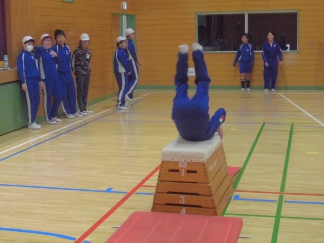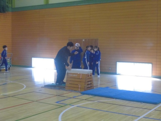5、6年生合同で跳び箱に挑戦です。日野小学校の子どもたちも一緒なので、日野小学校の先生も指導に入ってくれています。