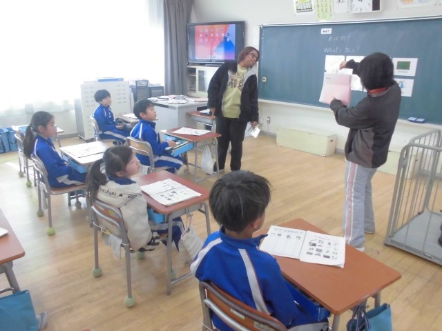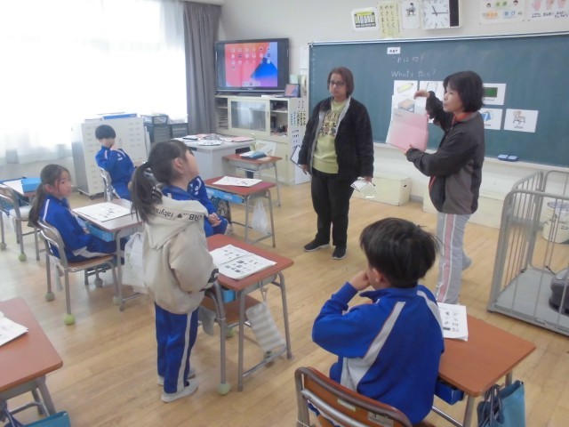 What's this? 先生の指定したものを英語で答えます。合ったいるとALTの先生からごほうびシールがもらえます。