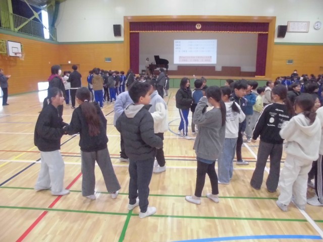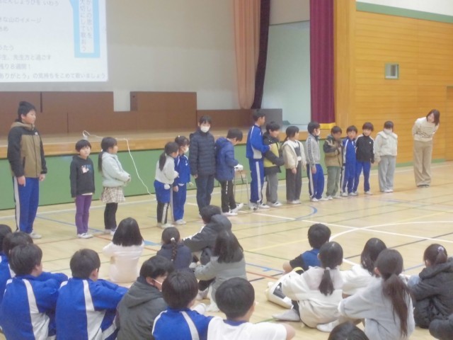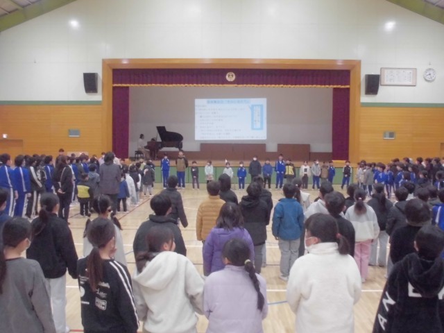 1月30日(金)音楽集会 公開日 2026/01/30 更新日 2026/01/30 できごと 1月の誕生日と日野小学校の子どもたちの自己紹介の後、みんなでお祝いの歌をうたいました。その後の合唱では、大人数のきれいなハーモニーをみんなで共有することができました。 +7