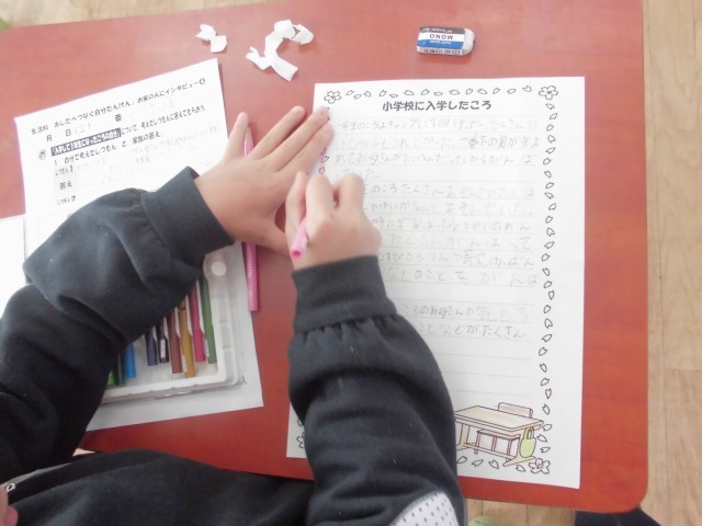 入学した頃のようすを、お家の方へのインタビューを含めて、写真や文章でまとめていきます。
