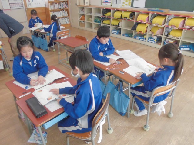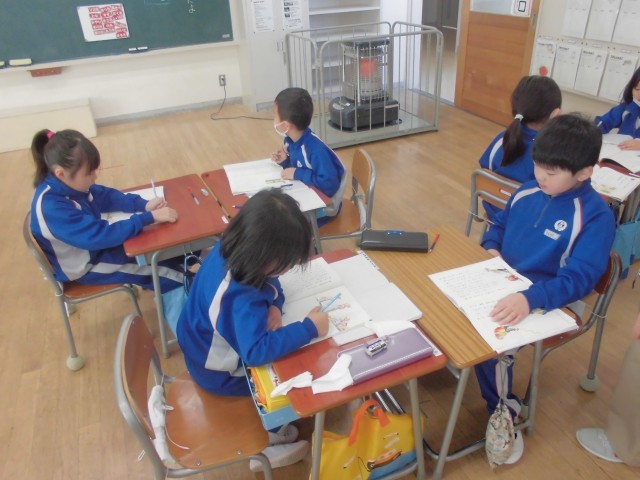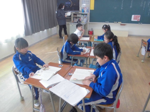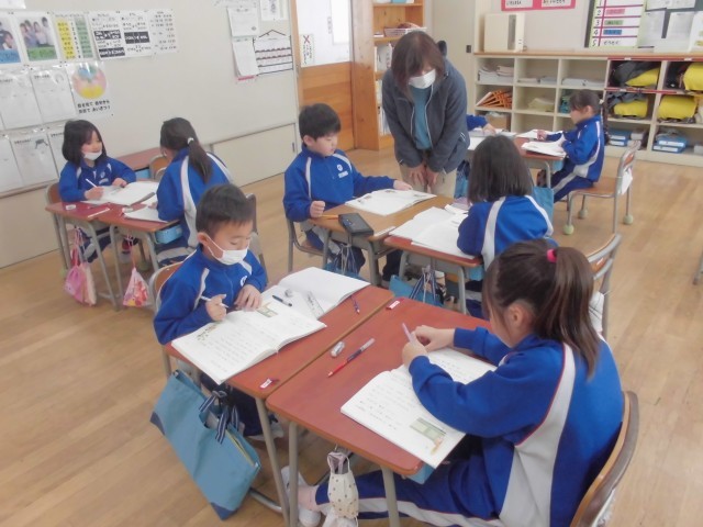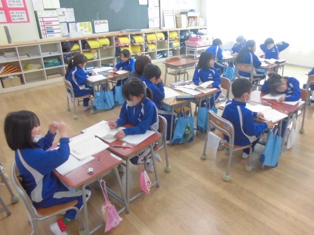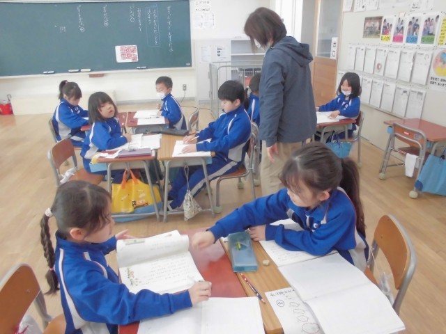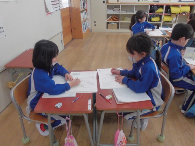 2月9日(月)1年生 国語 公開日 2026/02/09 更新日 2026/02/09 できごと 教科書の物語を読んで、ペアで感想を伝え合う活動です。お互いにしっかりと感想を伝え合い、メモをとることができていました。 +5