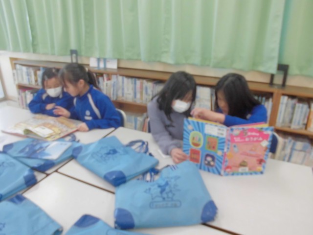読書タイムです。自分の読みたい本を決めてから、座って一斉に読み始めます。