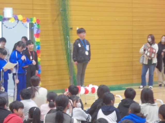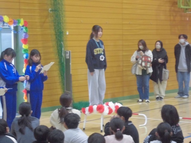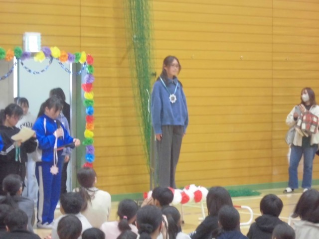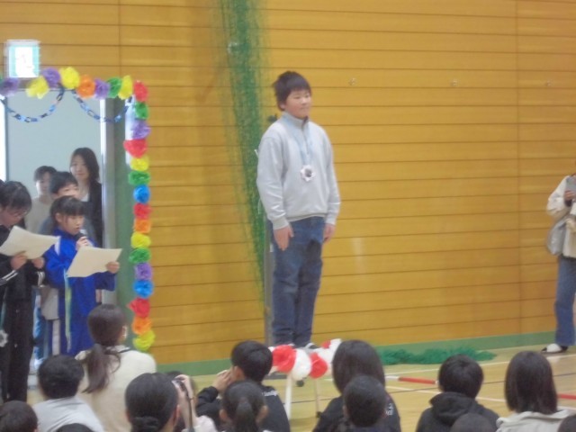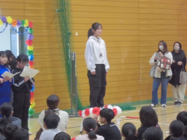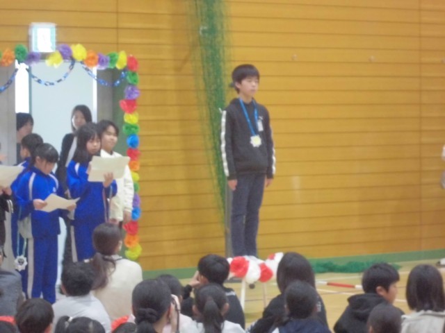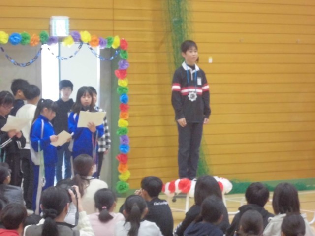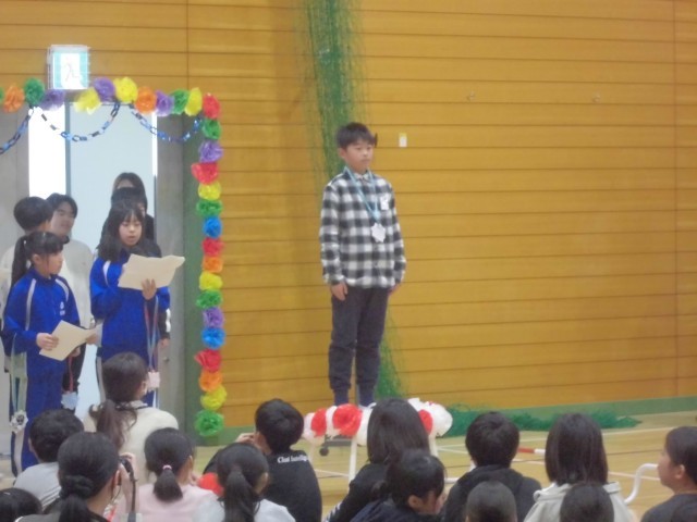 この学習発表会は、「6年生を送る会」の内容も含んでいるので、6年生の入場の際に「6年生の思い出」や「入りたい部活動」などがアナウンスされます。