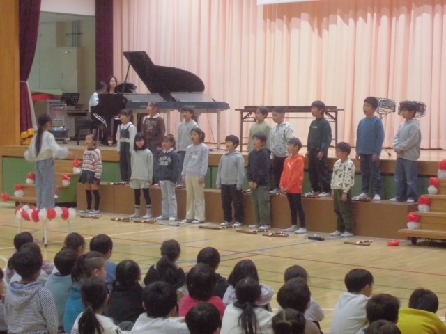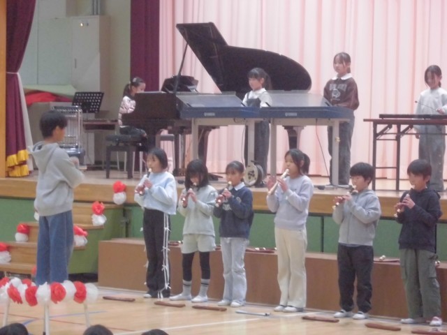 2月20日(金)学習発表会 3年生 公開日 2026/02/20 更新日 2026/02/20 できごと 学習発表会、3年生の発表のようすです。合奏を取り入れ、交代しながらいろいろな楽器を分担することができていました。 +7