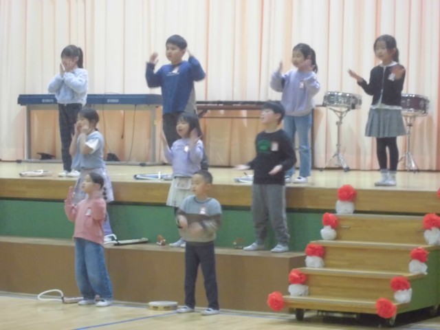 2月20日(金)学習発表会 1年生 公開日 2026/02/20 更新日 2026/02/20 できごと 学習発表会、1年生の発表のようすです。かわいいジェスチャー入りの感情込めた「くじらぐも」の群読や、元気いっぱいの歌声に感動させられました。 +7
