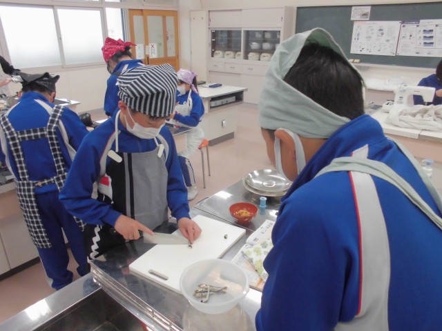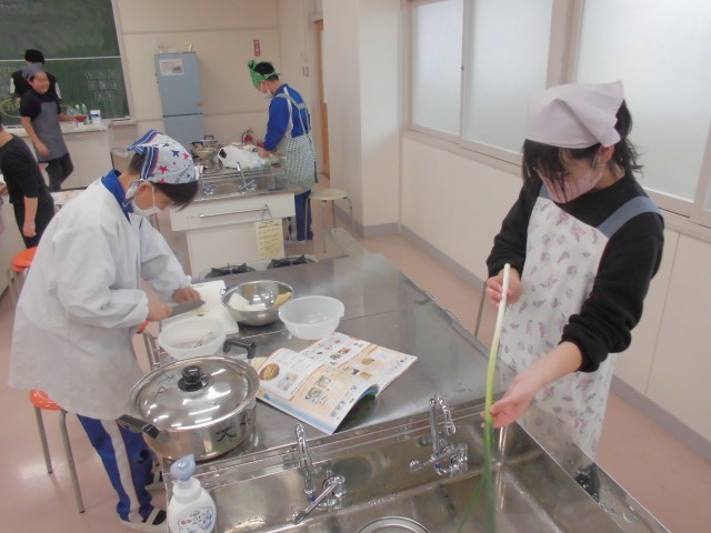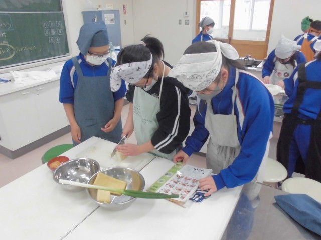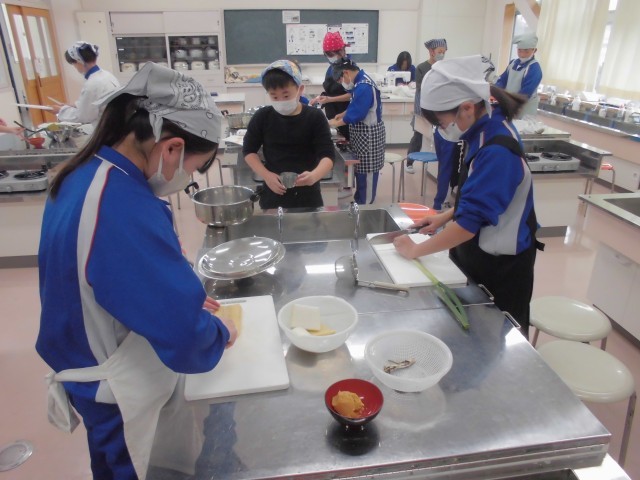 2月25日(水)5年生 家庭科 その1 公開日 2026/02/25 更新日 2026/02/25 できごと 煮干しでダシをとり、ダイコンと油揚げ、ネギが具材の本格的みそ汁づくりに挑戦する調理実習です。 +7