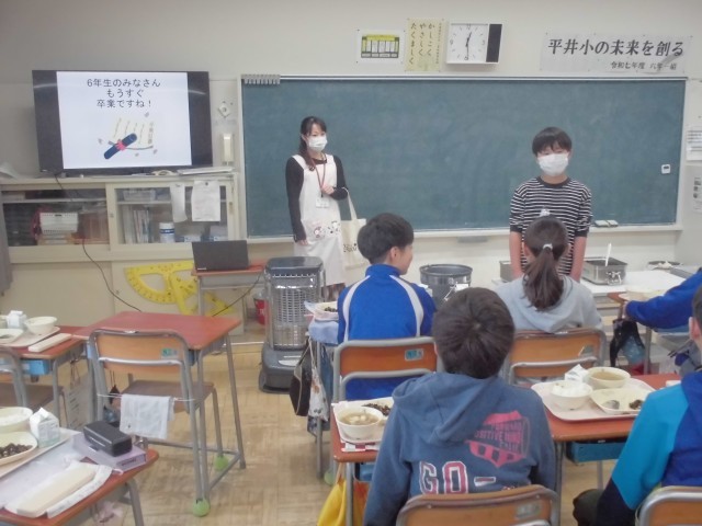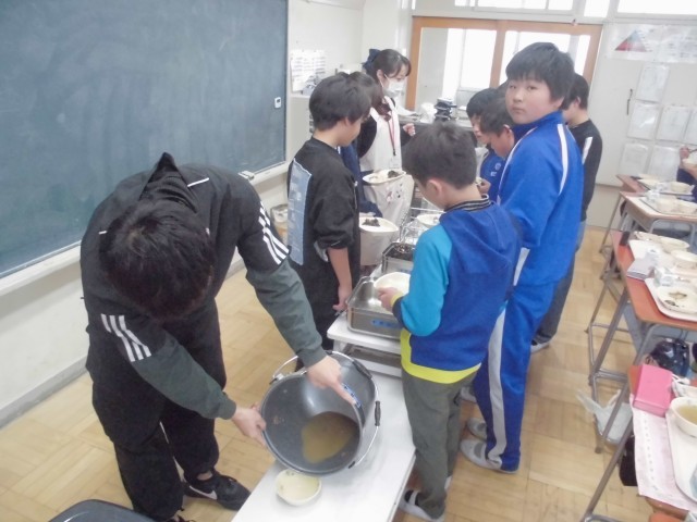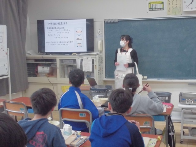2月25日(水)6年生 食育指導 公開日 2026/02/25 更新日 2026/02/25 できごと 給食センターから栄養士さんがいらして、小学校と中学校の給食の違いなどを給食の時間にお話をしていただきました。その前に、次々とカラになっていく食缶を見て感激し、とても嬉しそうでした。 +6