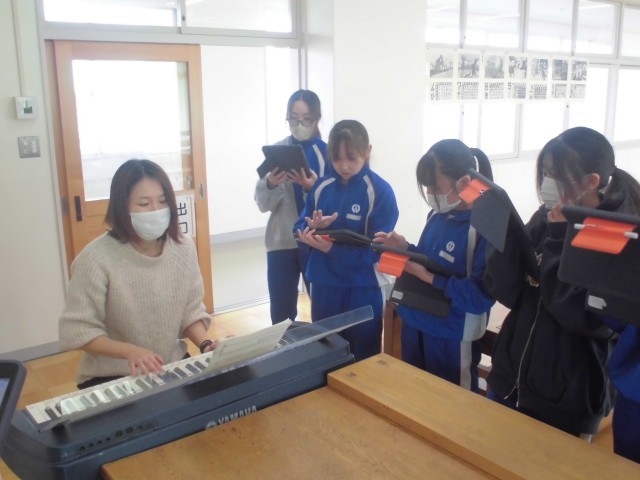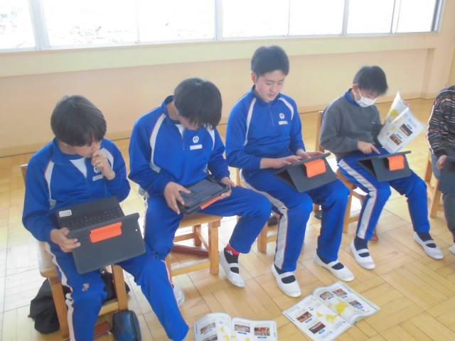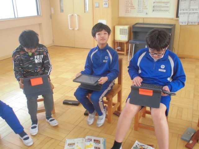 2月26日(木)6年生 音楽 公開日 2026/02/26 更新日 2026/02/26 できごと 新しい合唱曲をタブレットの歌詞や楽譜で確認しながら音取りをする女子チームと、世界の音楽について鑑賞しながらタブレット上のワークシートにまとめる男子チームです。もちろん、この後入れ替わって練習しました。 +5
