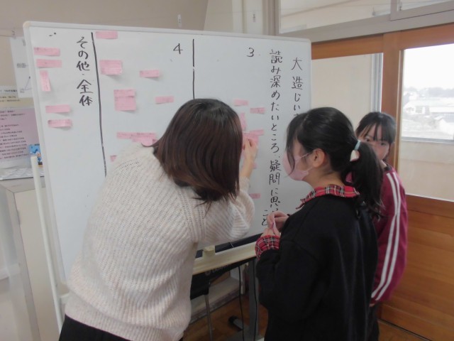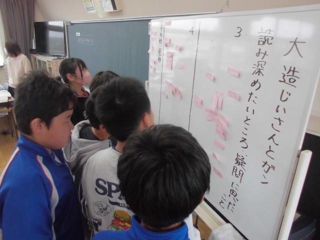 教室横に掲示された学習計画で進めていきます。まずは、自分たちで詳しく読み深めたいところを確認し合って、学習課題を自分たちで設定していきます。