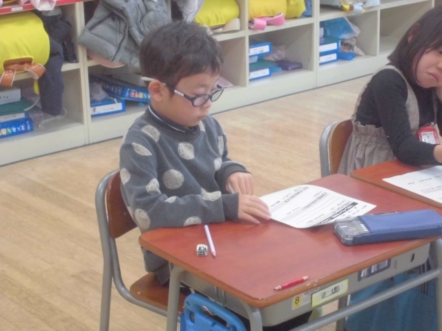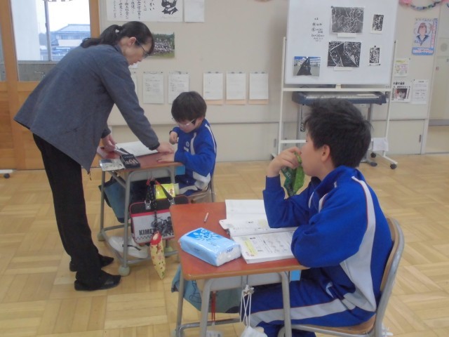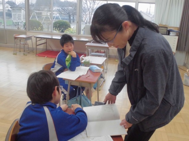 交流学級での生活のようすと、個別の算数のようすです。