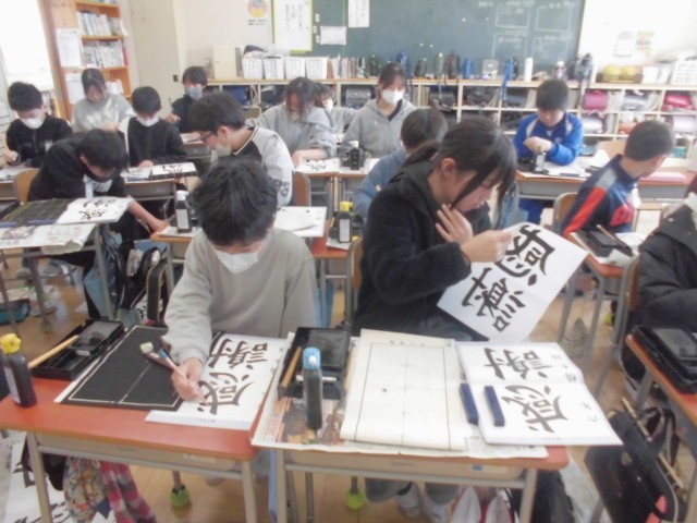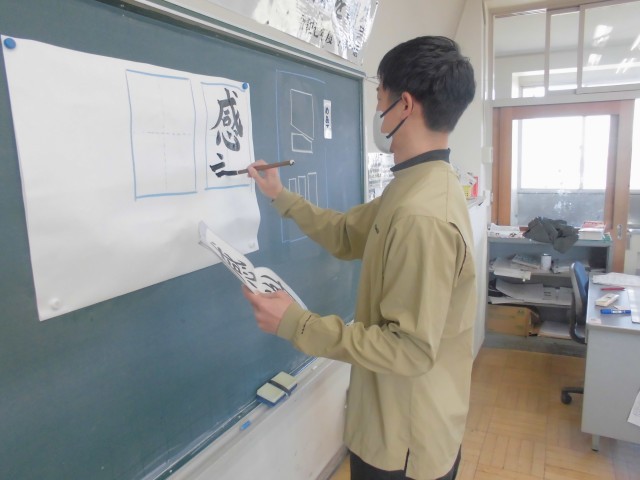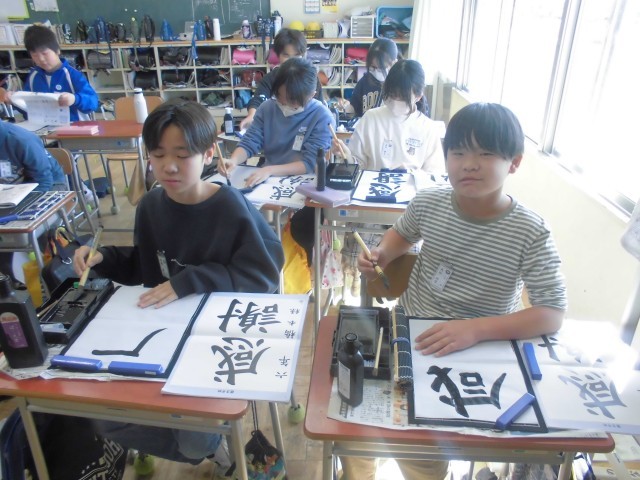 3月5日(木)6年生 書写 公開日 2026/03/05 更新日 2026/03/05 できごと 先生が自ら書いたお手本での指導ですから、説得力があります!この時期に「感謝」というお題もいいですね。 +7