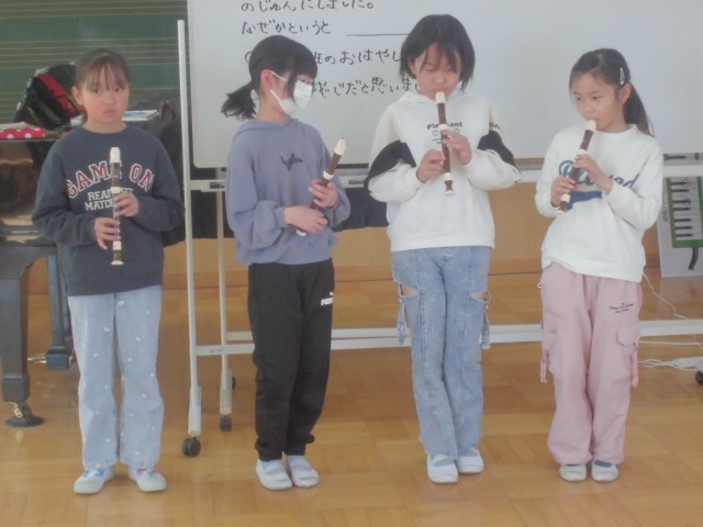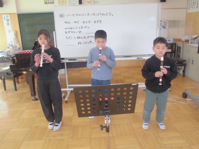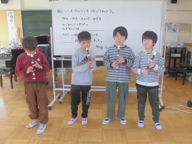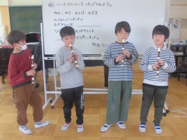 グループごとに自分たちで作曲した曲をリコーダーで演奏する発表会でした。聴く側は、よく聴いて感想カードを書き上げます。