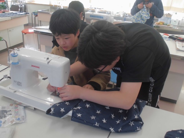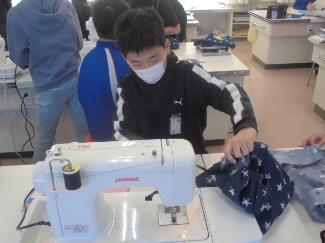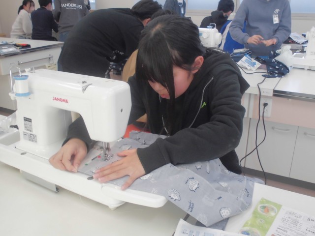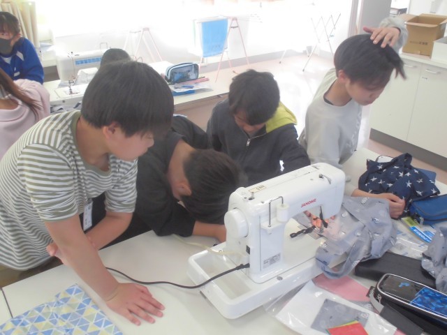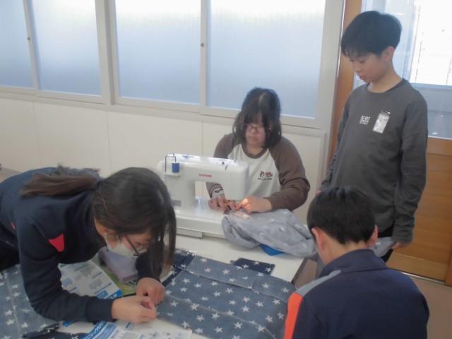 もうミシンの扱いも慣れたものです。オリジナルのエコバッグを製作中です。