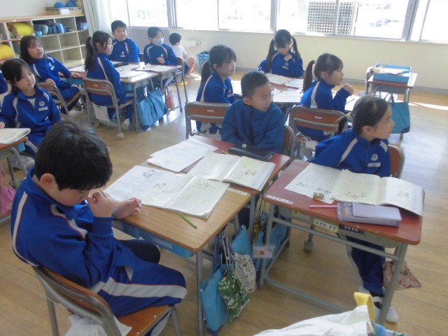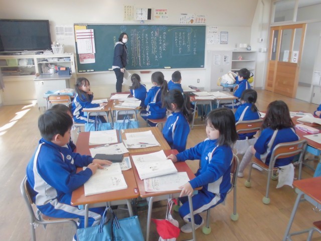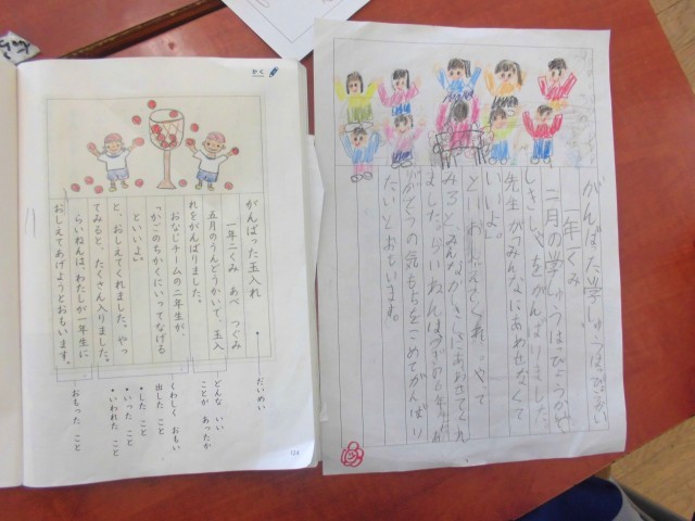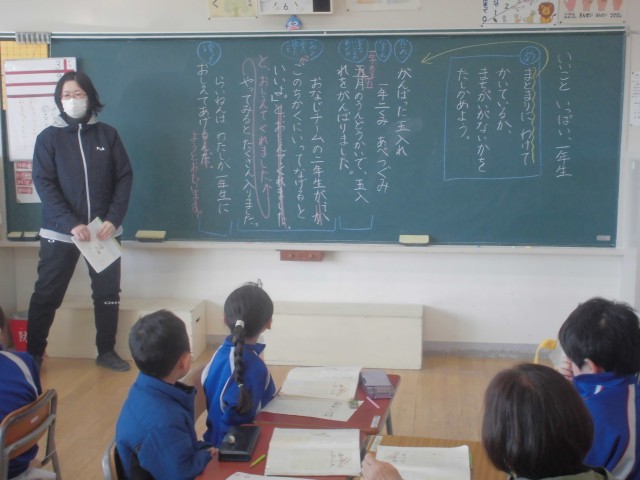黒板の例題の作文をみんなで修正しながら、自分の書いた作文は大丈夫かな?自分で校正していく力を身に付けます。