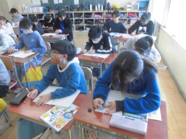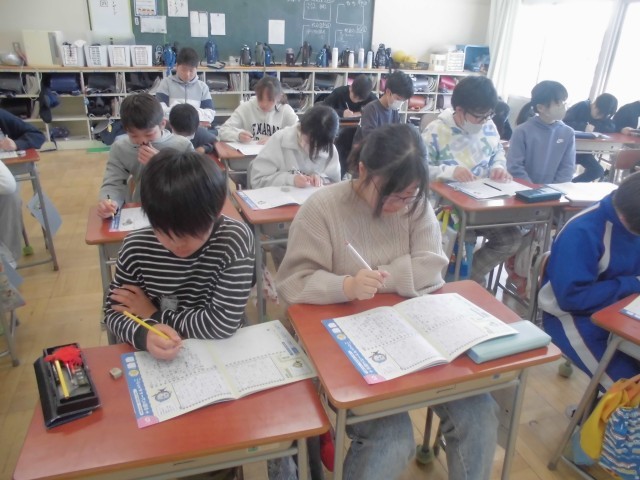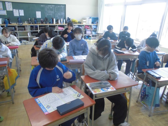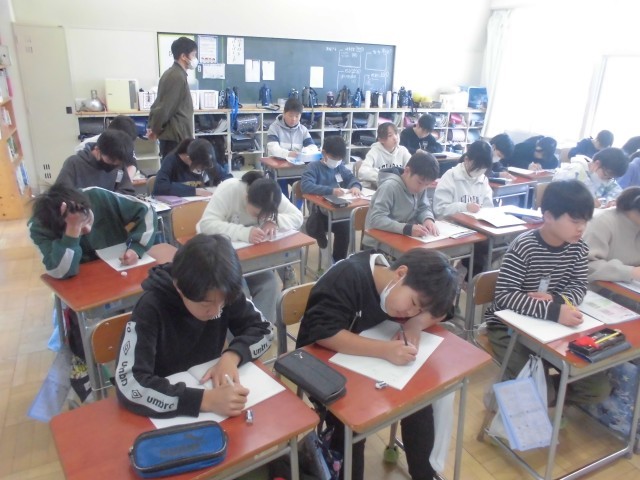 えんぴつでの硬筆練習のあと、抜き打ちのミニ漢字テストです。