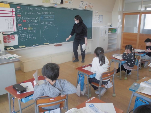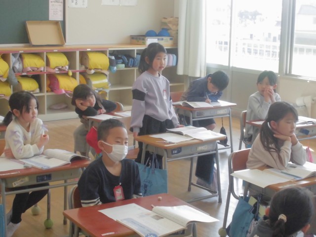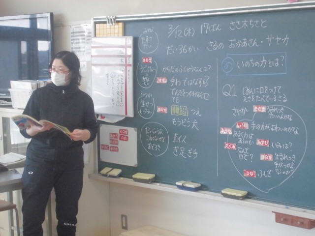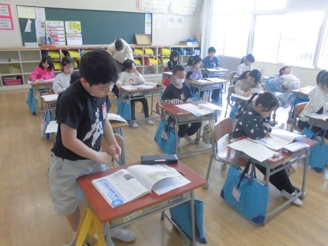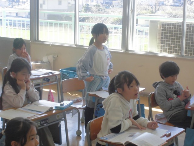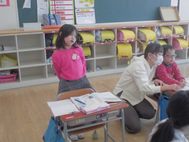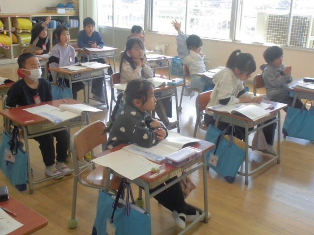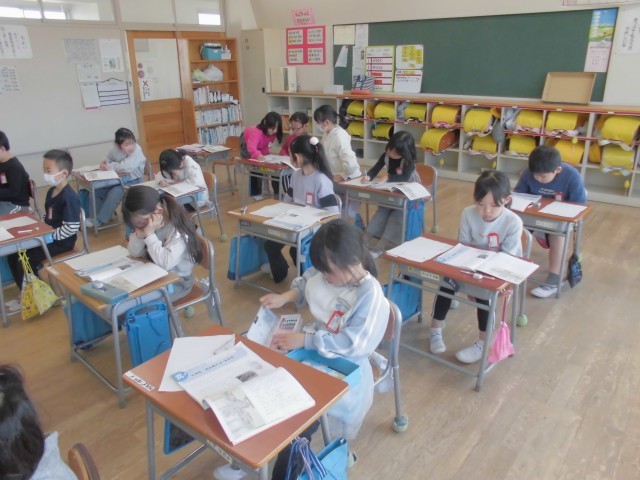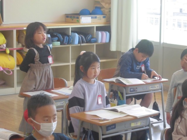 まずは読み物資料をよく読み込みます。ネームプレートを活用し、子どもたちの発表も活発です。