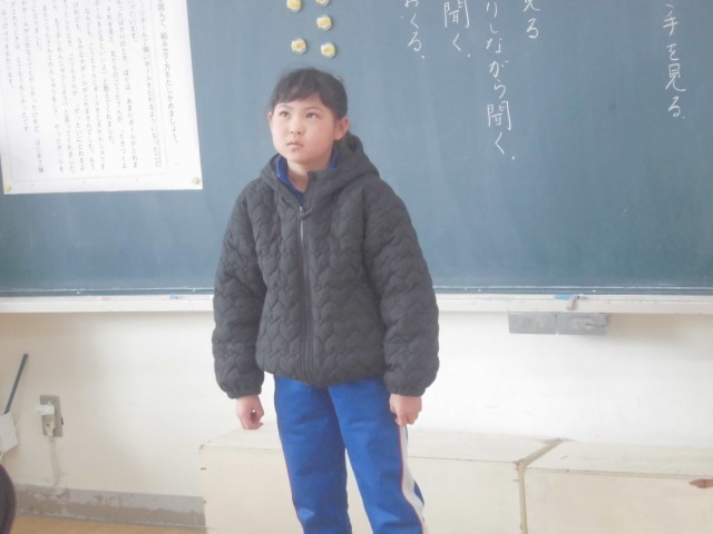 原稿を見ないで、2年生の思い出を発表します。とても緊張しますが、いい経験ですね。