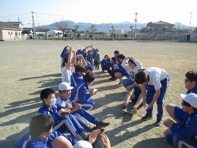 午後の時間は「思い出づくり」です。5時間目は、障害物のあるドッジボールなどのゲームを楽しみました。子供たちの遊びのアイデアは、面白いですね。6時間目は、借り物競争のようなイメージのリレーゲームです。2チームに分かれて、コースの途中にいる担任の先生のところで、カードを引きます。カードに書かれた内容のイメージにぴったりな友達の名前を呼んで、呼ばれた友達と一緒にゴールまで走ります。最後は、担任の先生が呼ばれて、一緒に走ってました。みんな大盛り上がり。楽しいひと時になったようです。