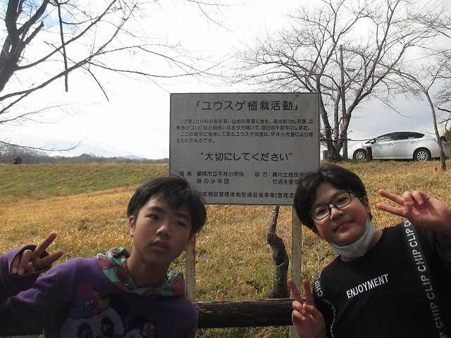 2時間目に、6年生の思い出づくり第3弾として、竹沼周辺の散策をしました。朝の雨もちょうど止み、日差しも出てきて歩きやすい時間になりました。竹沼の手前で「ユウスゲ保護活動」の看板に、「平井小学校・緑の少年団」の文字を発見!当時の卒業生の活動にも心を馳せました。散策しながらのゴミ拾いにも熱が入り、「空き缶、紙ゴミ、空き瓶・・・」とたくさんのゴミを拾うなかで、カメの甲羅も発見!沼ですから、大きなカメが棲んでいるのでしょうね。