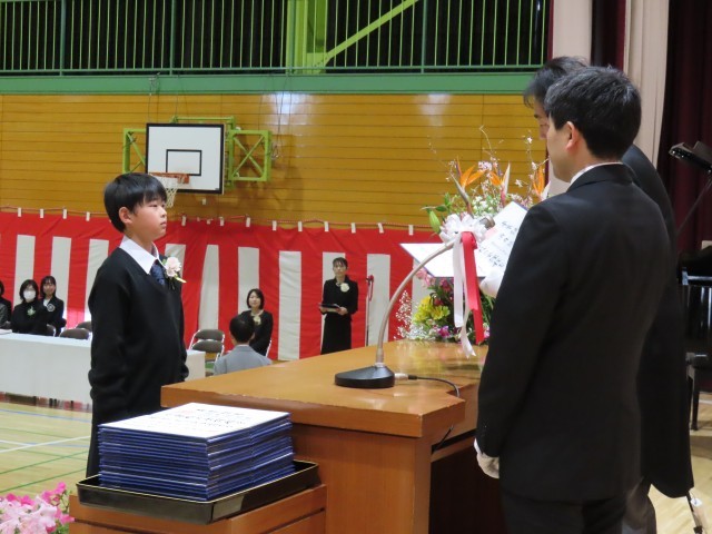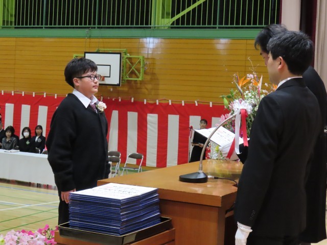 卒業証書授与の場面です。ステージ上からのようすです。