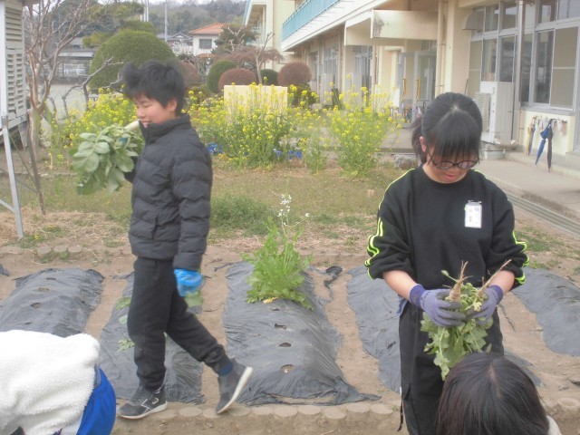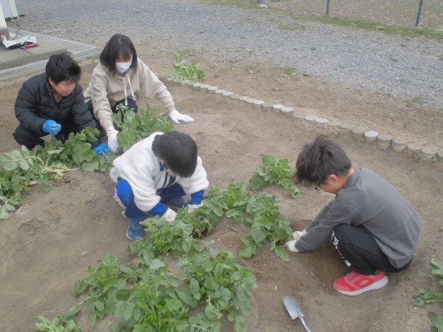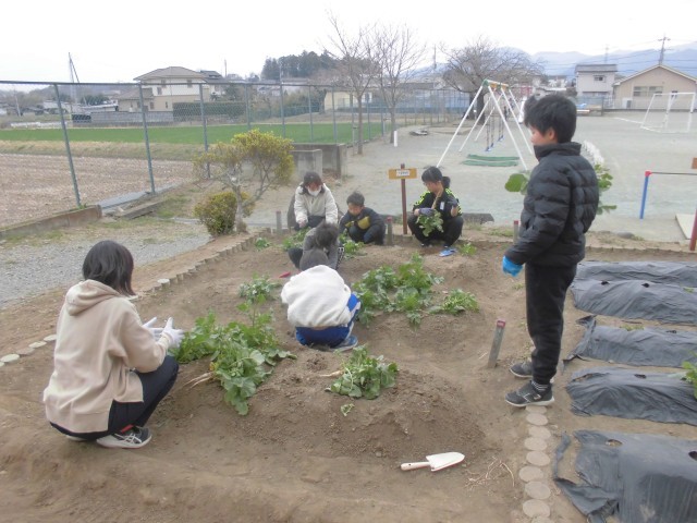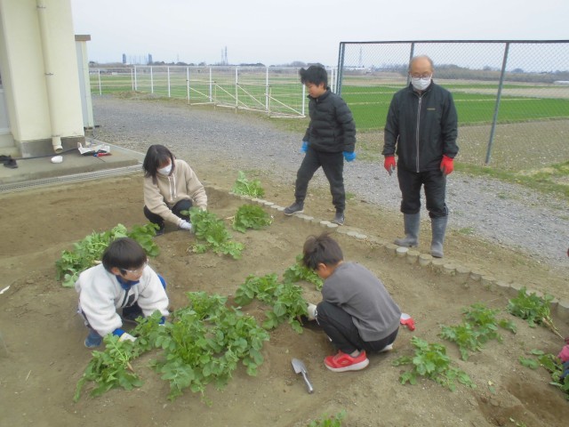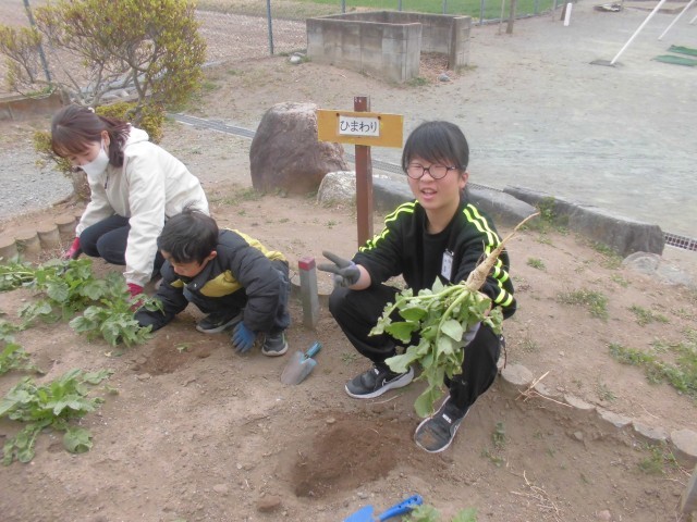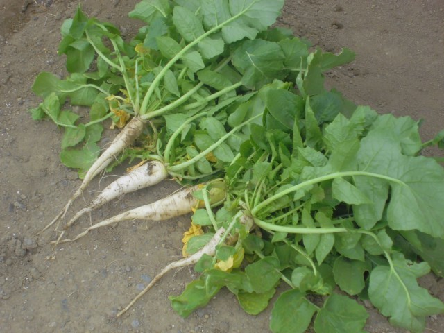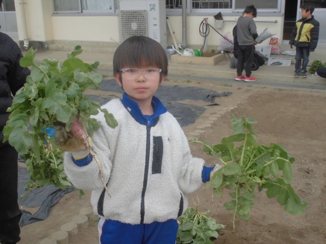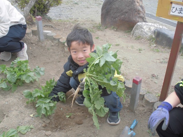 種から育てたダイコンの収穫です。思ったより小ぶりで、農家さんの偉大さを実感できました。でも、子どもたちの収穫体験には、ちょうどよかったようです。