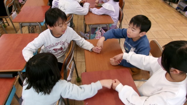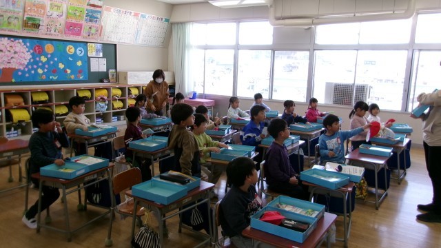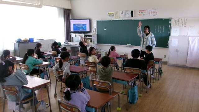 今日から本格的に学習活動が始まりました。1校時はどの学年も学級活動からスタートです。ひまわり学級では、新しい1年生を迎えて自己紹介をしていました。好きなものや好きなことを、先生が最初に霊璽を示した後に、一人一人黒板の前で発表していました。1年生が慣れたようすで話しているのにびっくりしました。1年生の教室では、お道具箱にどのようにものをしまうかを先生と一緒に確認していました。カスタネットをしまう際には、みんなで楽しそうに一斉に音を出してみました。また早くも友だち同士で助け合いながらお道具箱を片付ける様子が見られました。2年生ではまずは先生が画像を使いながら自己紹介をしていました。先生が「サメが好き」という発表を聞いて子どもたちはびっくりしていました。3年生では、いくつかのアクティビティを通して、まずは集中して話を聞くことやルールをよく理解して活動することの大切さを楽しみながら学んでいました。低学年はどの子も楽しそうに活動している様子でした。