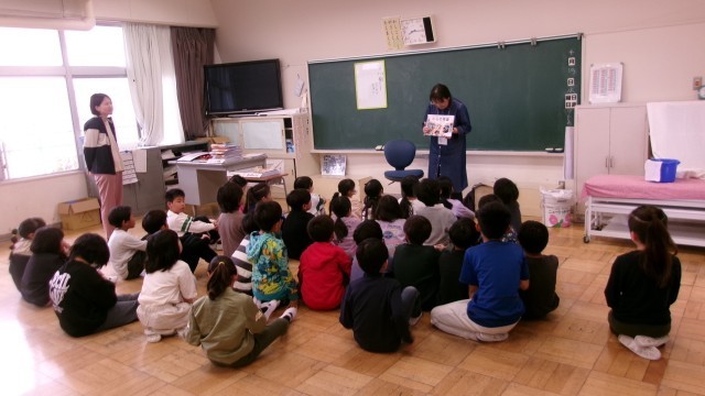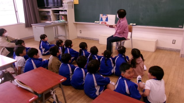 今日の業前は月に1回の、ボランティアの皆様による「本の読み聞かせ」の日でした。今年度初めての読み聞かせでしたが、2年生から6年生までの子どもたちはよく分かっていて、時間が近づくと机を後ろに下げたり前の方に並んだりと準備を済ませてボランティアの方を待っている学年もありました。また1年生は3人でボランティアの方をお迎えに来ていました。ざわざわしていた学年も読み聞かせが始まると、集中して絵本の方を向き、耳をかたむけていました。「本は心の栄養です。心の食事は読書です。」月に1回の読み聞かせ、子どもたちは楽しみにしています。ボランティアの皆様、今年度もどうぞよろしくお願いいたします。