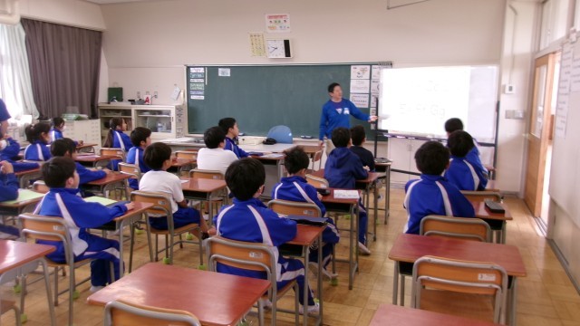 今日はALTの先生が英語を教えてくれる日です。4年生は今年初めての英語の学習です。英語でのあいさつを一通り終えた後、ウォーミングアップで、映像に合わせて英語の歌を歌いました。先生から「足長先生の歌」と言われ、なぜか子どもたちが盛り上がって楽しそうに歌っています。映像を最後まで見てみると確かに足長先生が登場してきました。子どもたちは昨年の学習をよく覚えていたのだなと感心しました。その後、今年の英語の学習の仕方などレクチャーを受けて準備をしていました。ALTの先生、担任の先生と一緒に今年1年の英語の学習の始まりです。