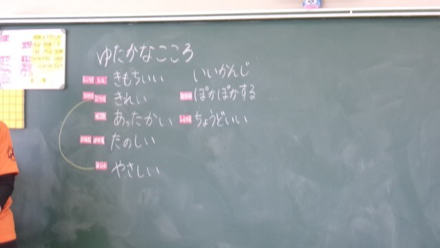 1年生は今日から道徳の学習が始まりました。「ゆたかなこころ」ってどんなことかをみんなで意見を出し合った後、道徳で考える3つのことについて、子どもたちは考えていました。