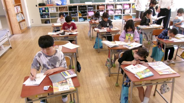 2年生は生活科で育てたい野菜を出し合い、何を育てようか考えていました。お気に入りの野菜を育てようといっしょうけんめい意見を出していました。