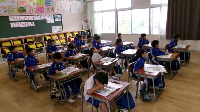 週始まりの2校時目、1年生は算数の学習です。まずは名前を書くところから、3ページ分の名前を書いた後に、1ページ目のイラストから、仲間分けを行っていました。ぶたさん、かえるさん・・・・など仲間分けをした後に、どんな種類の生き物が何匹あるいは何頭いるのかを数えていました。分類も、数字もこれから算数を学んでいく基礎となります。しっかり学習している1年生でした。