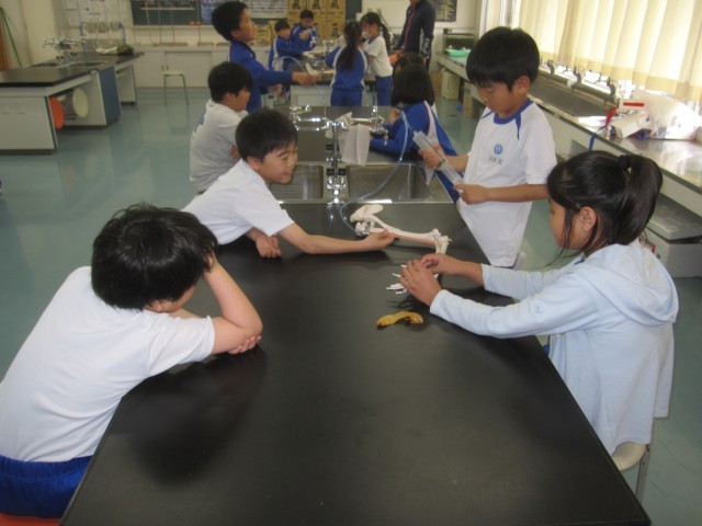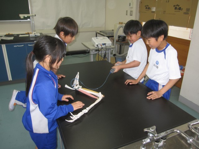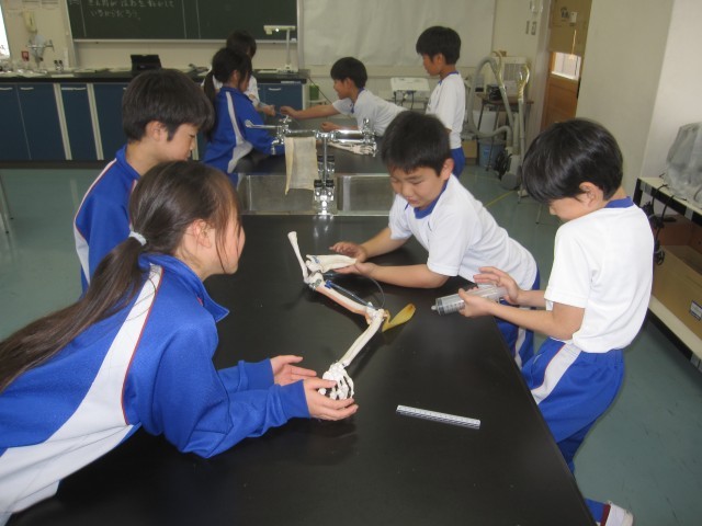 4月20日(月)4年生 理科 公開日 2026/04/20 更新日 2026/04/20 できごと うでのきん肉のつくりとうでの動きの関係を調べました。 うでは、ほねをつなぐようについているきん肉が、ちぢんだりゆるんだりえうることで、曲げたりのばしたりすることができることがわかりました。 +7