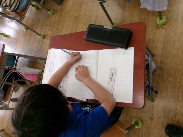 2年生の教室では、算数の学習が行われていました。めあてを全員で確認した後、ノートに書き写していました。先生が丁寧に机間巡視している途中でした。見ていた私からも、「みんな2年生になったんだからどんな風に書き写したらいい」と問いかけたところ、「きれいに書く」「すぐにやる」などの返事が返ってきました。よい子たちだなあとあらためて思いました。