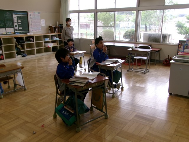 ひまわり1組では、上毛カルタについてどんなカルタなのか、どうやって遊ぶのかについて、カルタに付いている説明書きを元に先生が丁寧に説明していました。子どもたちは早くカルタがやりたいよう。「2人でやるときは何枚ずつ分ければいいかな」など、これまで学習してきたことももとにしながら、カルタをやってみることにしたようです。
