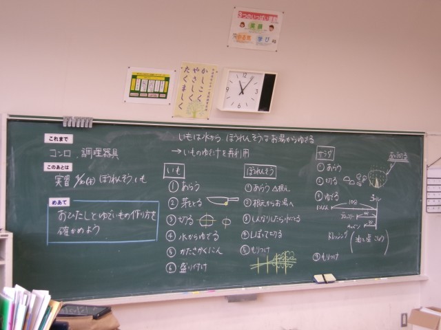 5年生は家庭科で調理実習の準備をしています。今日はジャガイモとほうれん草を茹でるための手順を確認していました。小学生になって初めての調理実習、きっと楽しみにしていることと思います。
