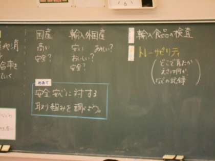 今日の5年生は、食品が生産から消費まで安全で安心して人の口に入るまでのしくみについて考えていました。普段何気なく食事をしていますが、わたしたちがおいしくいただくためにはたくさんの人の手がかかっていることがわかりました。食べ物を大切にする気持ちを改めて持てた時間でした。(写真上:今日の学習のめあてが板書されています 中:生産から消費まで食べ物の流れについての調べ方を確認しています 下:タブレットPCや紙の資料を使って食品の流れについて調べます)