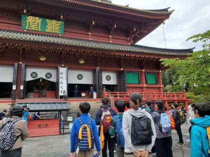 10/13 6年生修学旅行(2) 公開日 2022/10/13 更新日 2022/10/13 できごと バスは順調に日光へ。早くも最初の見学地輪王寺に到着しました。(写真上:輪王寺を拝覧する6年生 下:そして次は東照宮)
