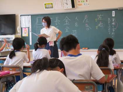 5/18 授業の様子(2) 公開日 2023/05/18 更新日 2023/05/18 できごと 4年生の授業の様子です。 書写は、6年担任の西山先生と勉強しています。「筆順と字形に気をつけて書こう」のねらいで硬筆にチャレンジしていました。(写真上) 外国語は、西中学校の棚澤先生と「外国の方の名前を知ろう」の学習をしていました。(写真中) 道徳は、担任の佐々木先生と「さかあがり」という資料を使って、クラスのよいところについて話し合っていました。(写真下)