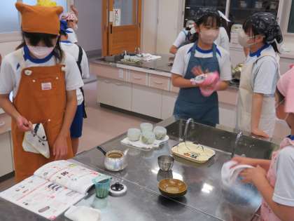 5/19 授業の様子(2) 公開日 2023/05/19 更新日 2023/05/19 できごと 4年生は、理科「乾電池のつなぎ方」では、これまでの実験やその結果を思い出しながら、自分の言葉で分かったことをまとめていました。(写真上) 5年生は、家庭科で「お茶を入れて飲む」学習をしていました。事前の学習でまとめた手順を確認しながら、お茶を入れる体験をしていました。(写真中、下)