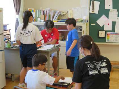 9/5 授業の様子(1) 公開日 2023/09/05 更新日 2023/09/05 できごと 暑い中でしたが、子どもたちは落ち着いて学習に取り組んでいます。 チャレンジウィーク2日目の授業の様子です。 3年生は外国語活動で「I like 〜.」「I don't like 〜.」を学習していました。(写真上) 5年生は算数で「公倍数」「最小公倍数」を学習していました。(写真中) ひまわりの個別学習の様子です。(写真下)