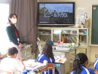 給食の食材の野菜を作っている生産者の皆さんの様子をビデオで見せてもらいました。