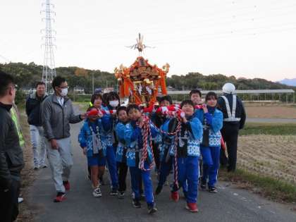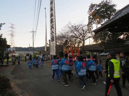 11/14 三嶋神社の子供みこし(1) 公開日 2023/11/14 更新日 2023/11/14 できごと 毎年11月14日は、西平井地区の「三嶋様の夜祭り」が行われます。 西平井地区に住む20数名の子どもたちは、おみこしをかついで、本社から別殿にご神体をお運びしました。 三嶋様の夜祭りは、市指定重要民俗文化財に指定されています。
