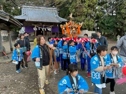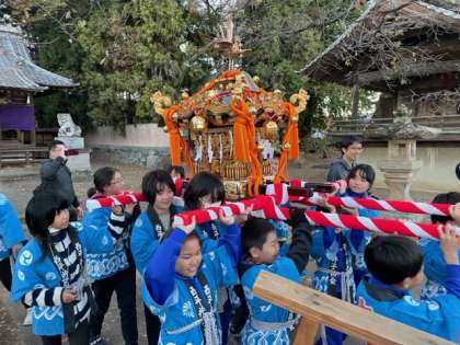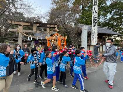 子どもたちは、元気なかけ声を出しながら重たいおみこしをかついでいました。